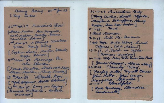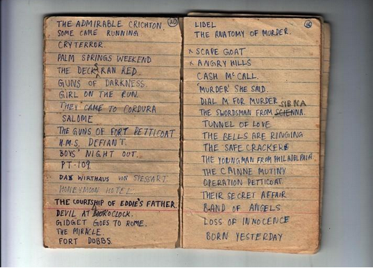 | Diaries in which I maintained a list of movies screened at the Open Air Theatre (OAT) |