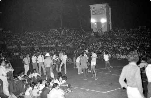 Our cunning schemes notwithstanding, we were quite lucky. Mardi Gras succeeded in every respect. The crowds were phenomenal. Almost anyone and everyone was there, whether they were a high school kid or a college student. It was the first festival of this scale and scope held in Madras and everyone wanted to be a part of it - whether a participant or attendee. One constantly bumped into people one knew from outside, even those who were just curious. Naively, we had not planned for crowd control ion any serious way. Bobo recalls “… The most rowdy moments came with OAT attendees throwing paper aeroplanes made out of those decorated note-paper sheets we had handed out to help people jot names and addresses down”. In their first edition of a long-repeated tradition,, Madras Christian College did two memorable things on the last night of the festival. They were the last Western pop music team to go on, and they were extraordinarily LATE with endless sound checks and what not, which made a restless OAT crowd somewhat short-tempered. But, they brought down the house. As Johnnie recalls “… the hangers-on, the musicians, the organizers, the audience were all awed. The strains of “Jesus Christ Superstar” resonating in the OAT (which was a great amphitheater to begin with) hushed everyone. When they said goodnight, you felt that you had been privileged to have been a part of it”. Our out of town guests confessed that the MCC set beat anything they had heard back home.